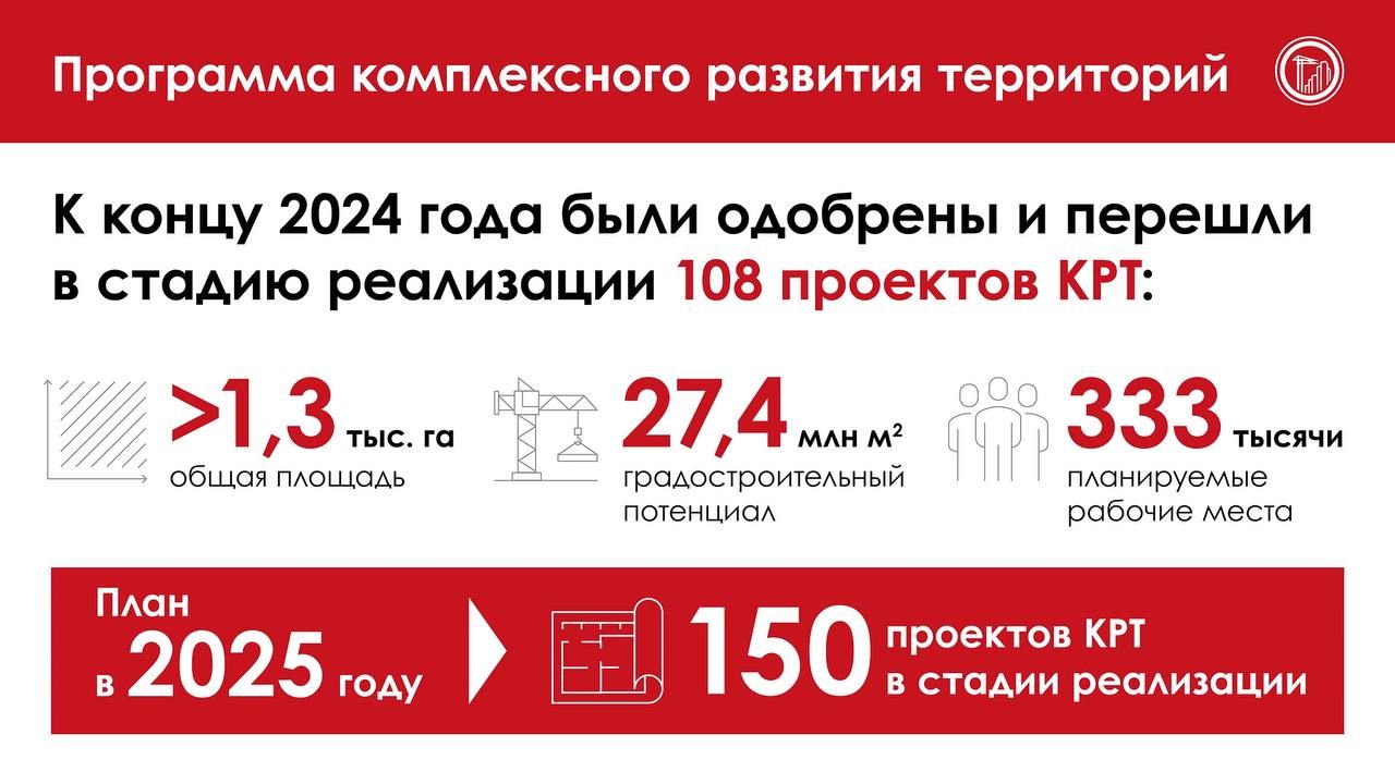 «В 2025-м увеличим число реализуемых проектов до 150. Также ожидается завершение комплексного развития территории Октябрьское Поле», —отметил Сергей Собянин.