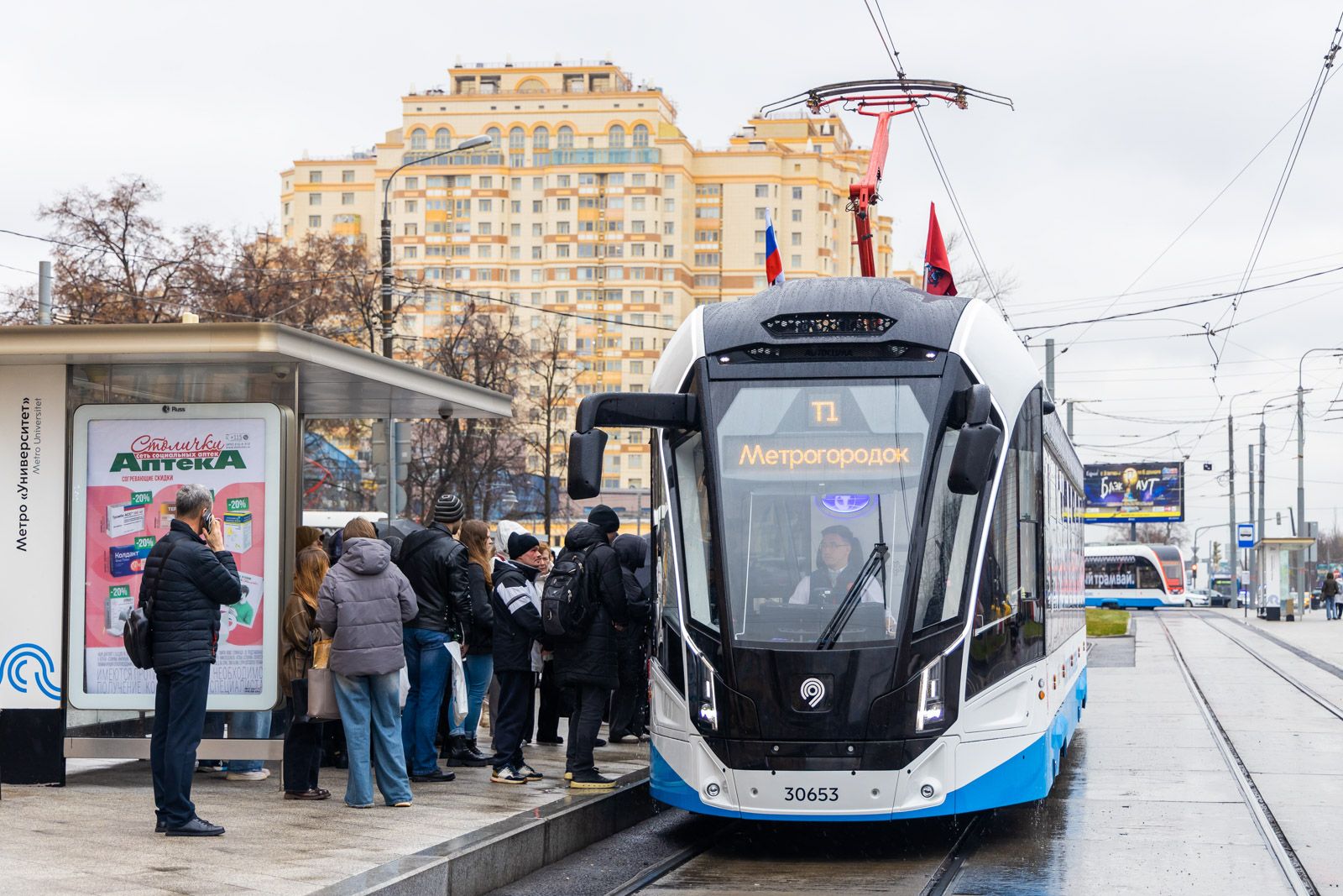 Второй участок бесконтактной сети длиной 2,1 километра на Трифоновской улице открыли в декабре 2025 года. Через 30 лет трамваи вернулись на Рижскую площадь. Маршрут № 5 связал станцию метро «Рижская», Российский университет транспорта и Белорусский вокзал.