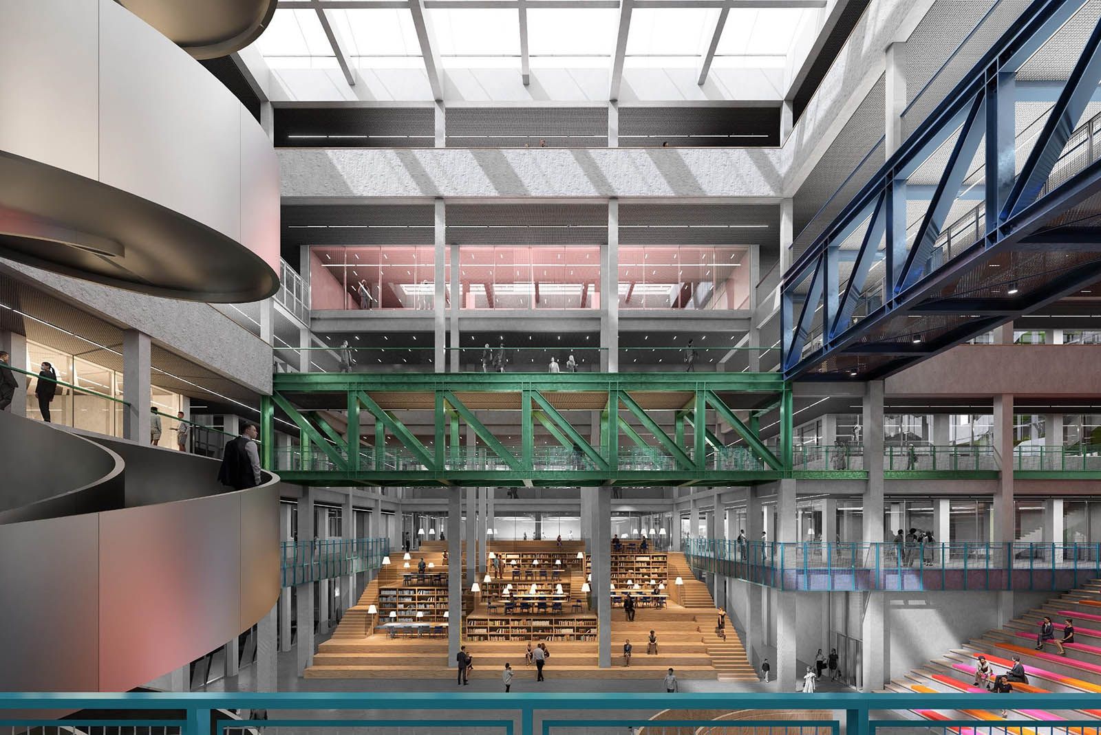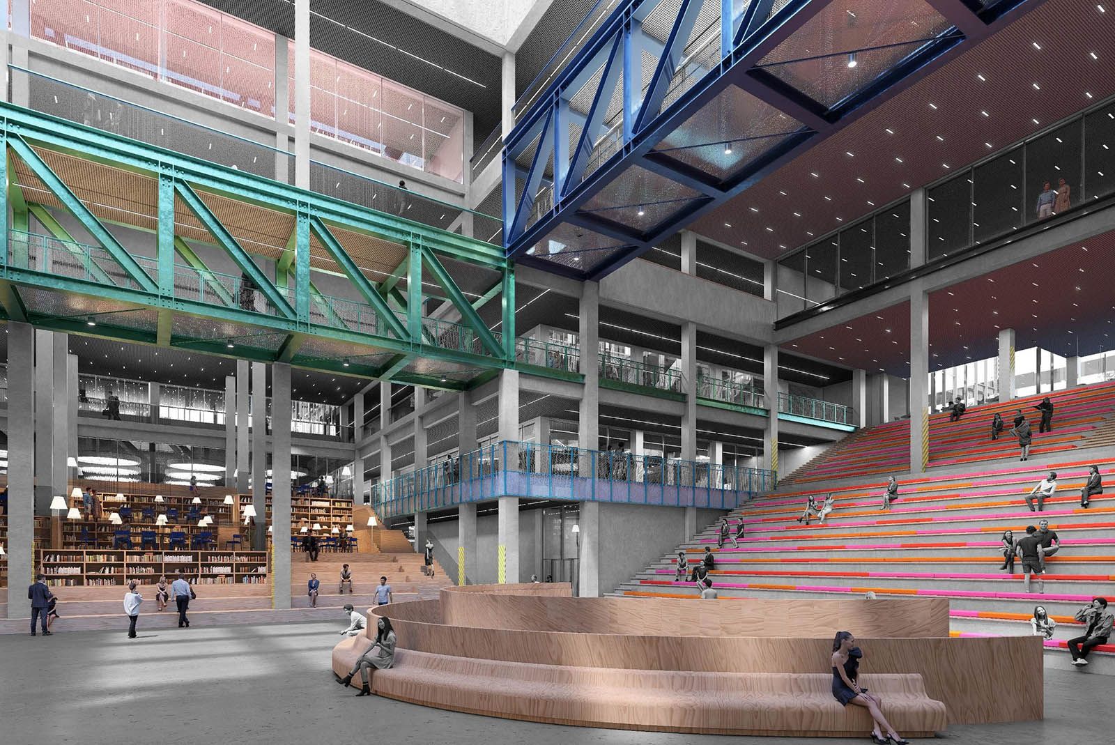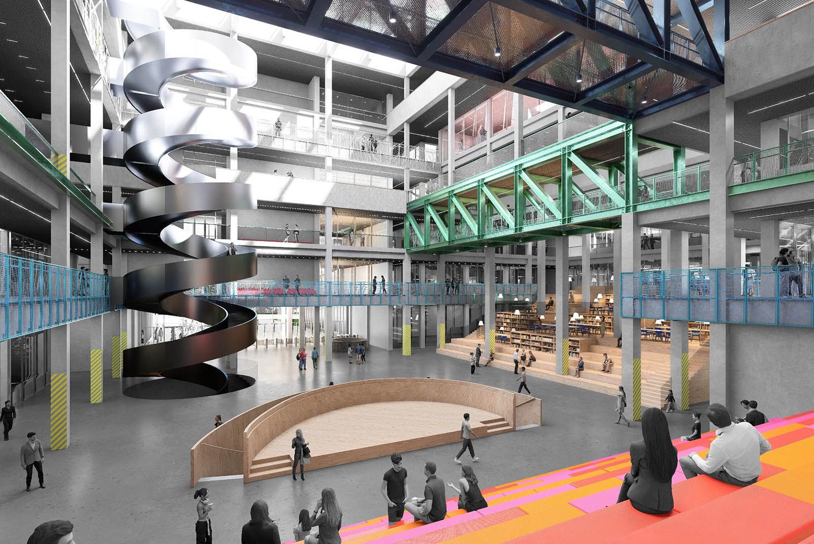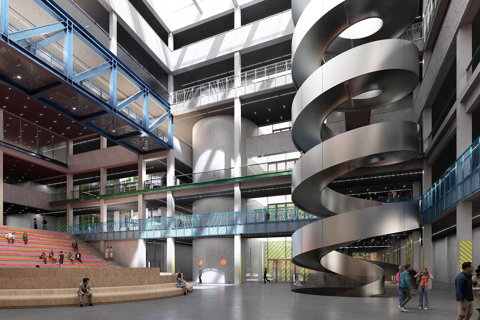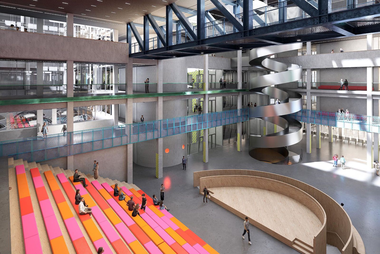 В техноколледже планируют оборудовать два спортивных зала, а в центральной части здания — два амфитеатра. В одном из них расположится медиатека, другой станет местом проведения мероприятий и отдыха.