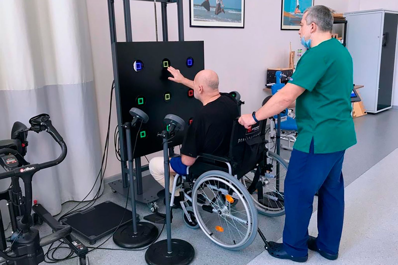 В зеленоградском реабилитационном центре протестировали комплекс «Хабилект». Он состоит из большого экрана, на котором показывают упражнения, и лазерного датчика, оценивающего выполнение заданий. Такие тренировки помогают врачам увидеть динамику пациента в ходе реабилитации. Сейчас разработка тестируется в Московском городском центре реабилитации.