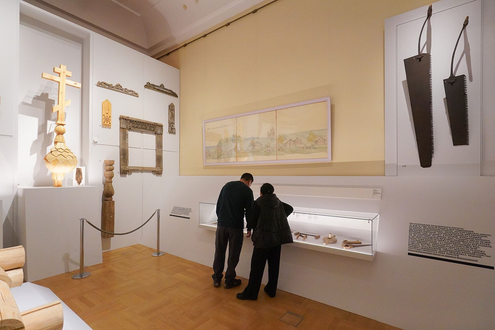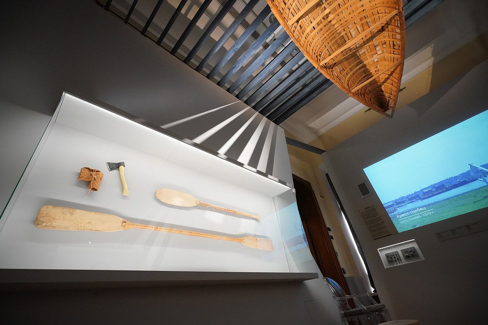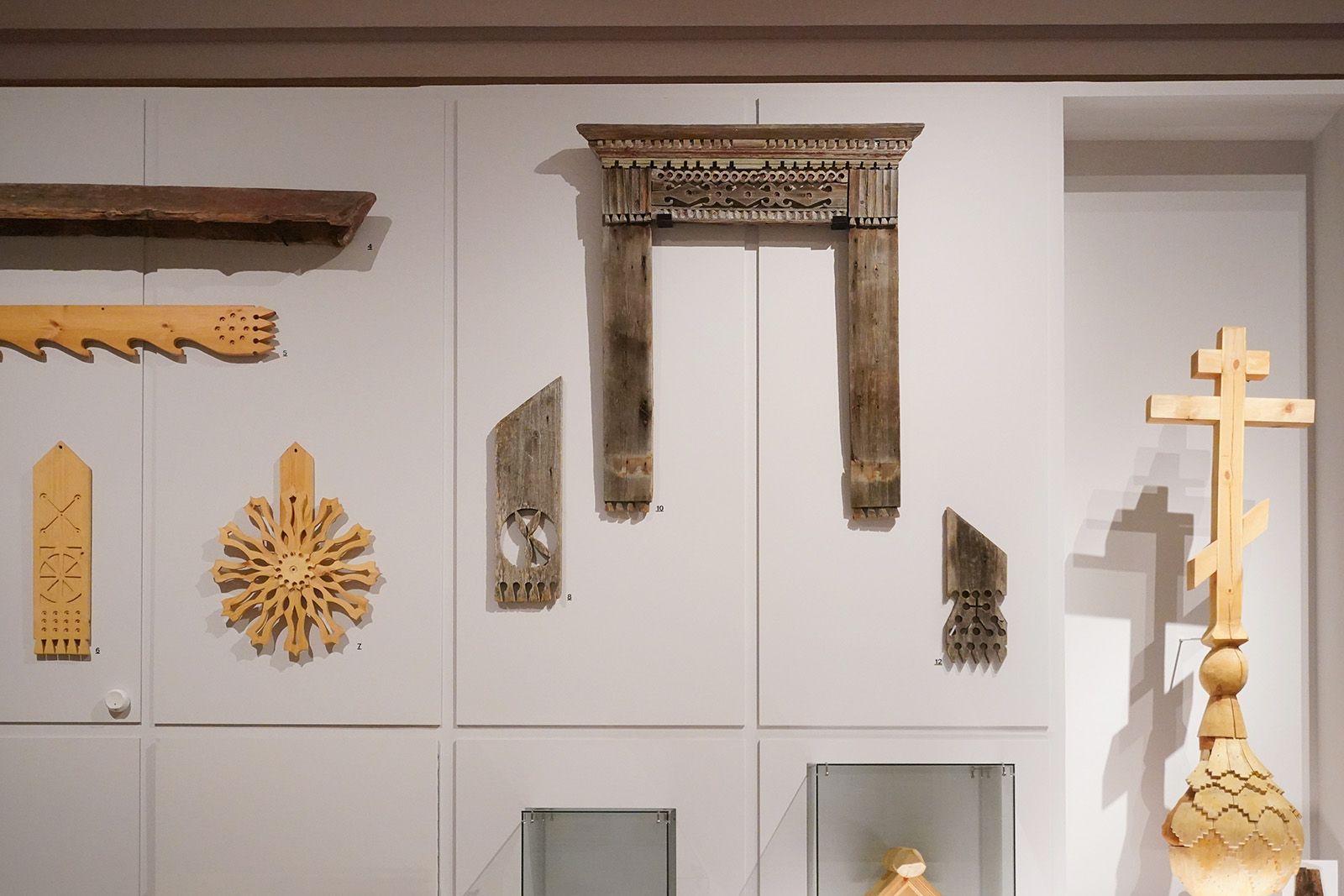 Проводы на промыслы превращались в обряд, где женщина говорила трогательные слова: «На живую воду идешь, может, не свидимся». Поморы занимались резьбой: часто изготавливали какую-либо полезную для дома вещь со своими инициалами — на память, если вдруг не вернутся. На выставке можно увидеть много таких предметов: прялки, вальки, детали ткацкого станка, ящички.