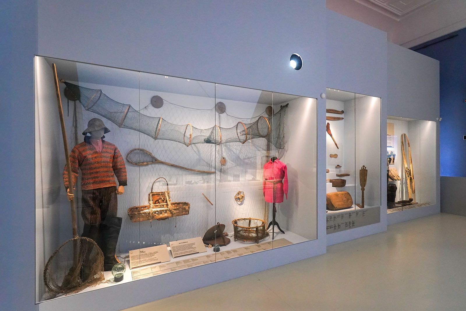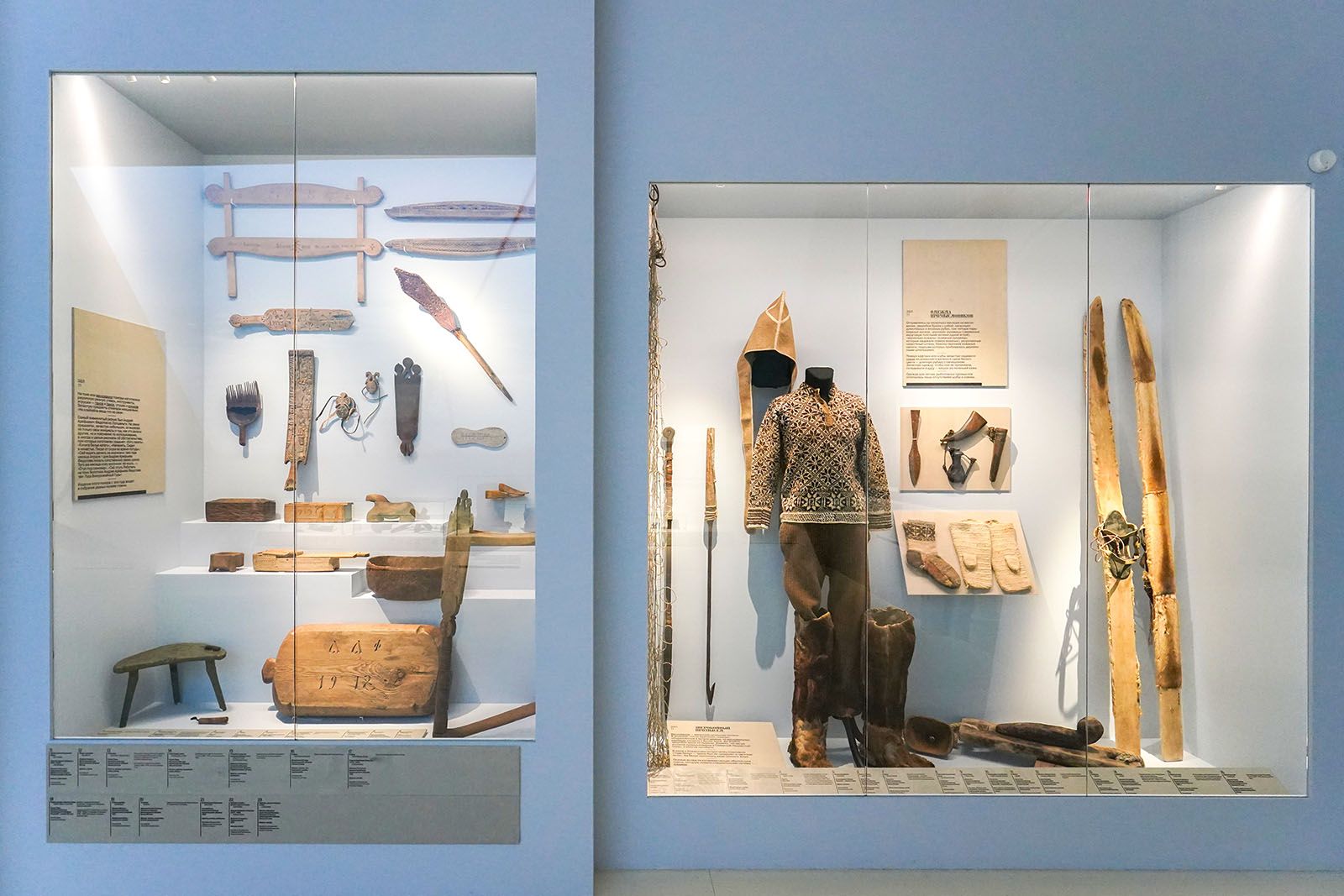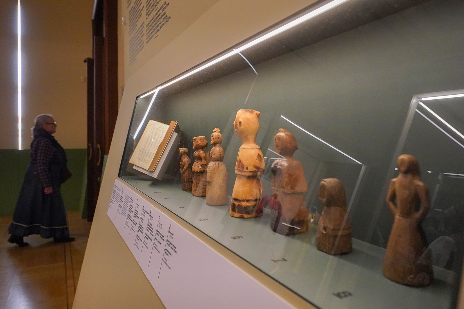 Проводы на промыслы превращались в обряд, где женщина говорила трогательные слова: «На живую воду идешь, может, не свидимся». Поморы занимались резьбой: часто изготавливали какую-либо полезную для дома вещь со своими инициалами — на память, если вдруг не вернутся. На выставке можно увидеть много таких предметов: прялки, вальки, детали ткацкого станка, ящички.