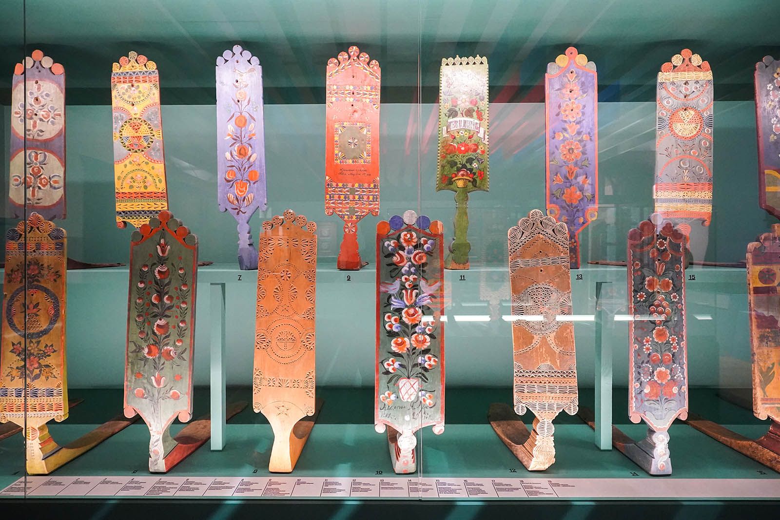 Крестьяне украшали мебель, изображая на ней цветы, узоры, зверей настоящих и фантастических — львов и единорогов. Кроме того, до наших дней сохранилась уникальная дверь с портретом — вероятно, хозяина.