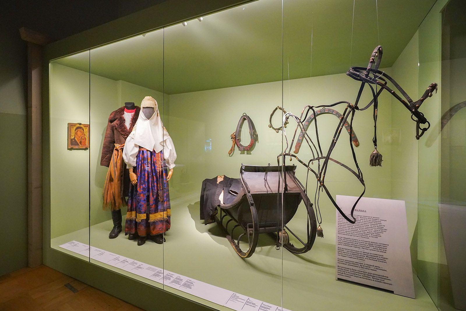 Более чем через 800 экспонатов на выставке рассказывают о быте жителей Кенозерья и Поморья, истории о природе этих суровых и прекрасных мест. На некоторых экспонатах Марина Мелютина, куратор выставки, руководитель отдела изучения и интерпретации историко-культурного наследия Кенозерского национального парка, остановилась более подробно.