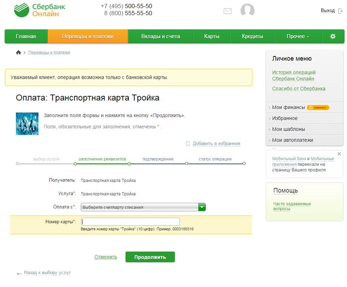 Карту «Тройка» можно пополнить с помощью интернет-банка