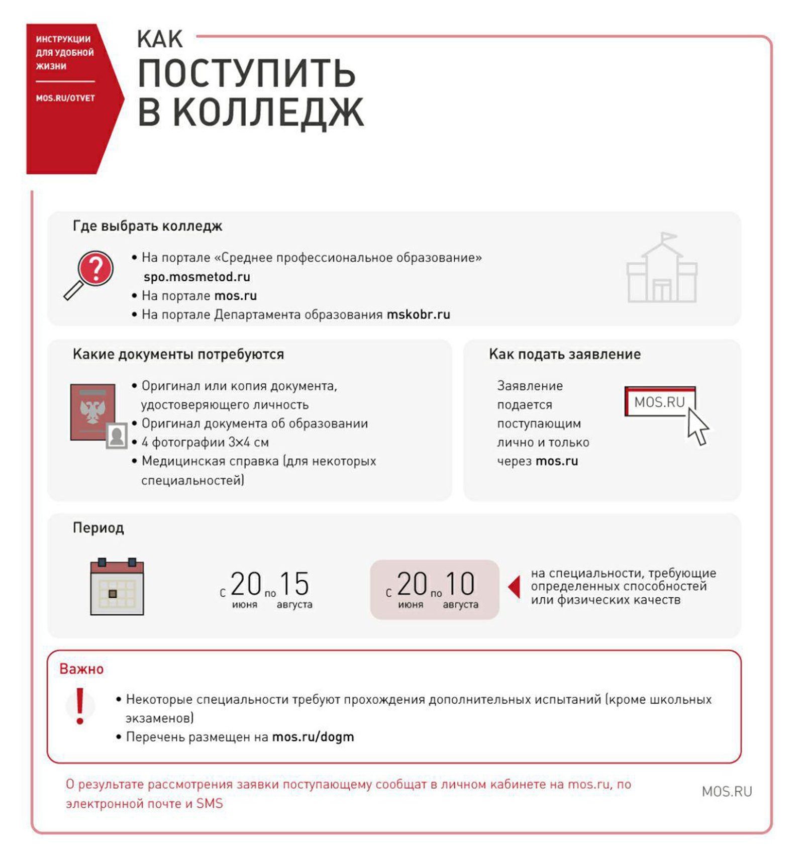 В парке «Сокольники» 30 июня в павильоне № 2 состоится выставка «Открытый день приема». Абитуриенты смогут оценить ведущие учебные заведения столицы и сразу же подать документы в колледж или вуз, который им понравится.